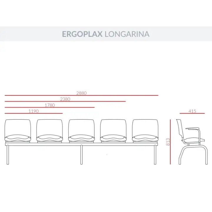- Versatilidade de acabamento: A longarina Ergoplax oferece opções de pés fixos em Plástico Preto, Metálico pintado e cromado, permitindo escolher o acabamento que melhor se adequa ao estilo e necessidades do ambiente.