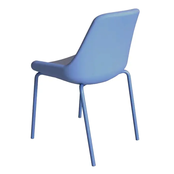 - Assento e encosto estofado e pés metálicos, base fuxa.