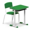- Mesa com Porta Livros: A mesa individual apresenta um tampo em ABS e é montada sobre uma estrutura tubular de aço, incluindo um conveniente porta livros em plástico injetado.