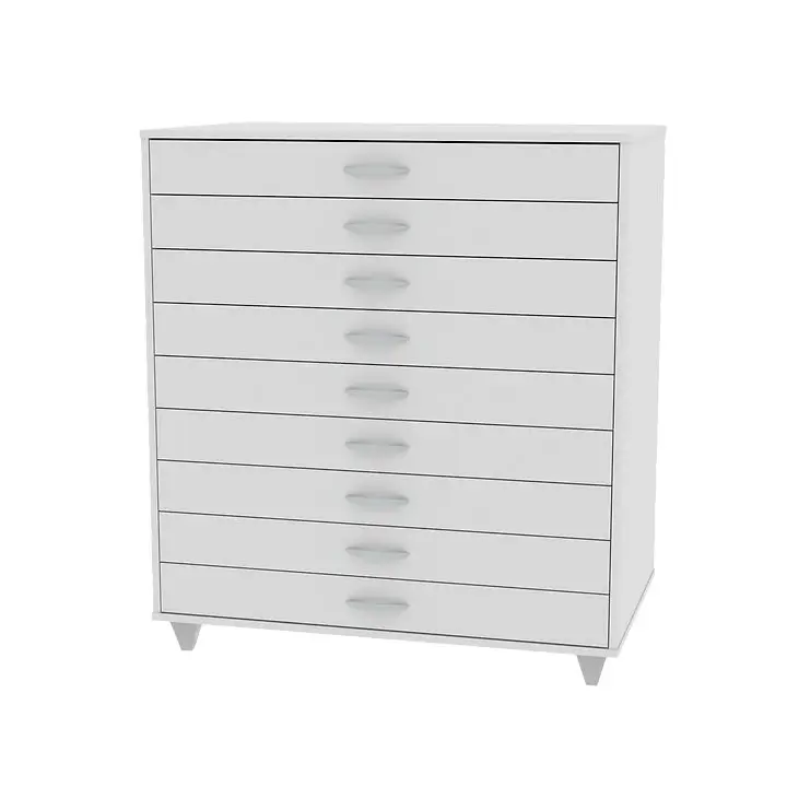 O Armário Porta Cartolinas com 9 Gavetas da Niteroflex é a solução inteligente para organizar e armazenar cartolinas, papéis e materiais de forma eficiente e acessível. Construído em MDP de 15 mm, este armário oferece 9 gavetas espaçosas, cada uma com 9,5 cm de altura, permitindo a organização meticulosa dos seus recursos.