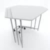 - Tampo fabricado em MDP 15 mm e estrutura em tubo de aço 7/8º. Mesa Diamante com rodízios e empilhável.