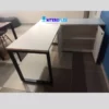 - Tampo fabricado em MDP 25 mm com fita de borda de 2mm, pé quadro 120×60 em aço carbono, pés com niveladores de altura, saia em MDP 15 mm.