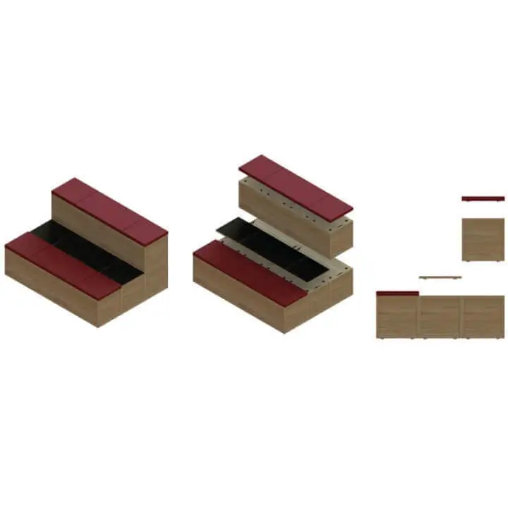 - Com design moderno e funcional, a Arquibancada Geometric Niteroflex é perfeita para espaços de convivência e eventos.