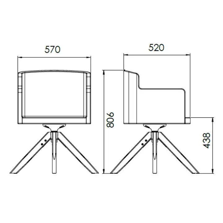 - Largura da Poltrona: 570 mm.