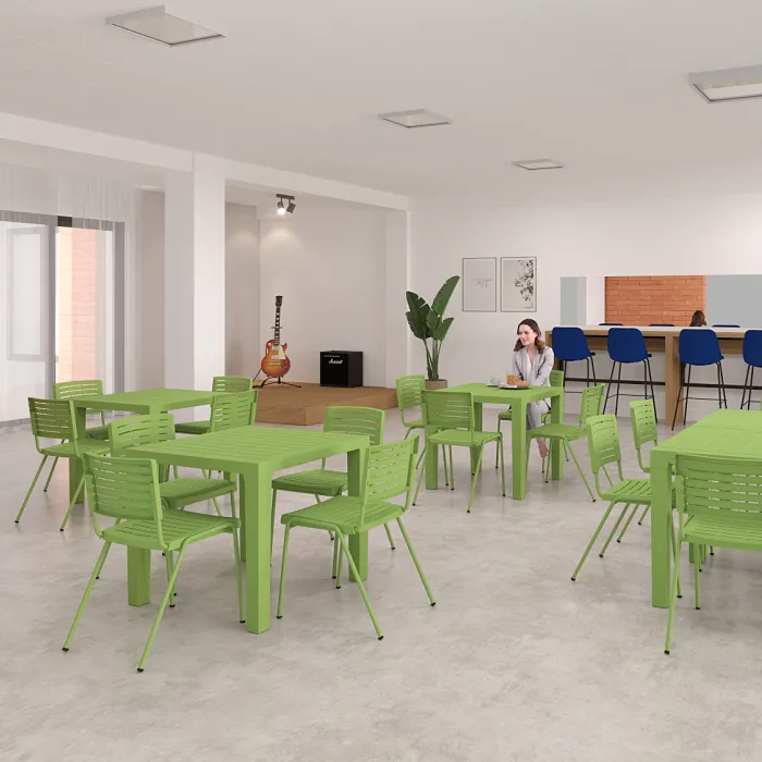 - A Material Durável: O polipropileno não só oferece uma manutenção fácil e resistência a intempéries, mas também garante uma longevidade excepcional ao mobiliário.
